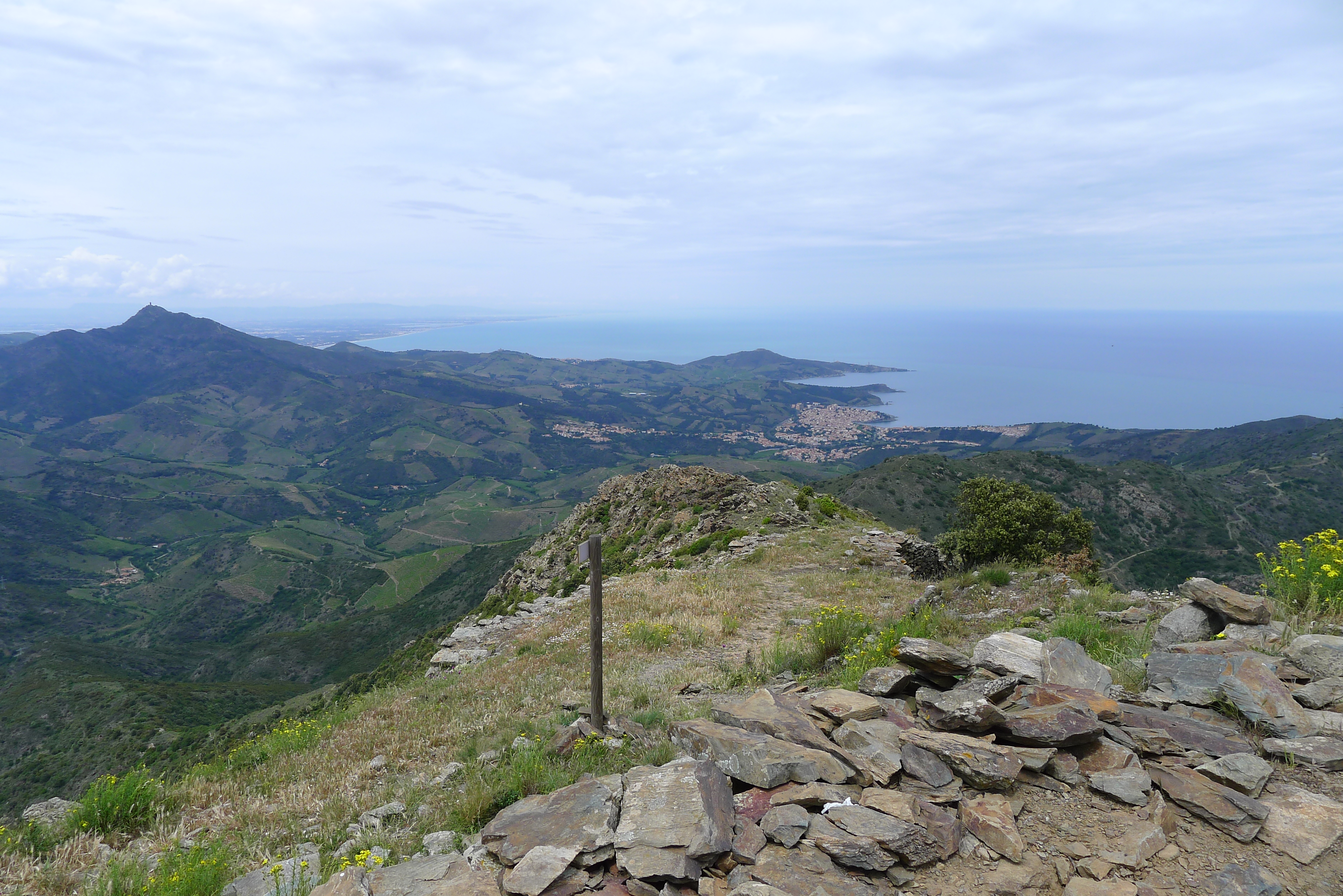 Depuis ce sommet on voit la tour Madeloc et Banyuls