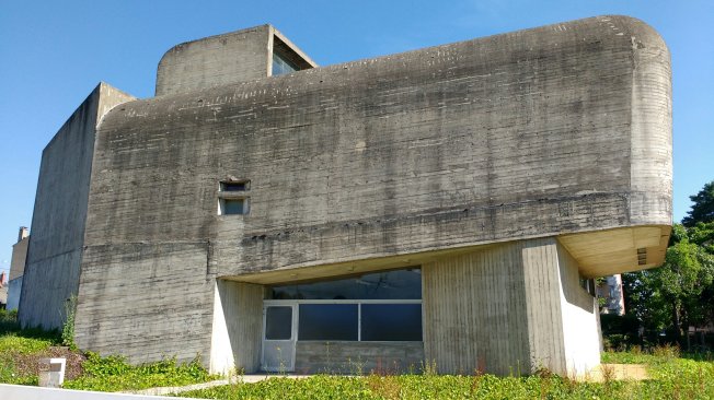 On a commencé avec une belle visite de Nevers : il y a des vitraux modernes dans la cathédrale qui sont superbes et nous sommes allés en vélo jusqu’à une église blockhaus / oblique de Claude Parent érigée en 1966 🙂