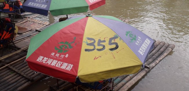 Pas les pousses dans une assiette, mais des radeaux sur le fleuve. Une dizaine de troncs attachés entre eux, dirigés par un pilote muni d’une longue perche (en bambou). Les passagers s’affalent par deux sous le parasol multicolore officiel.