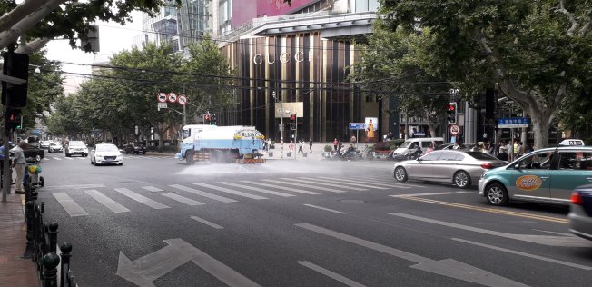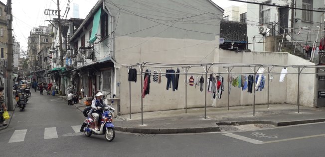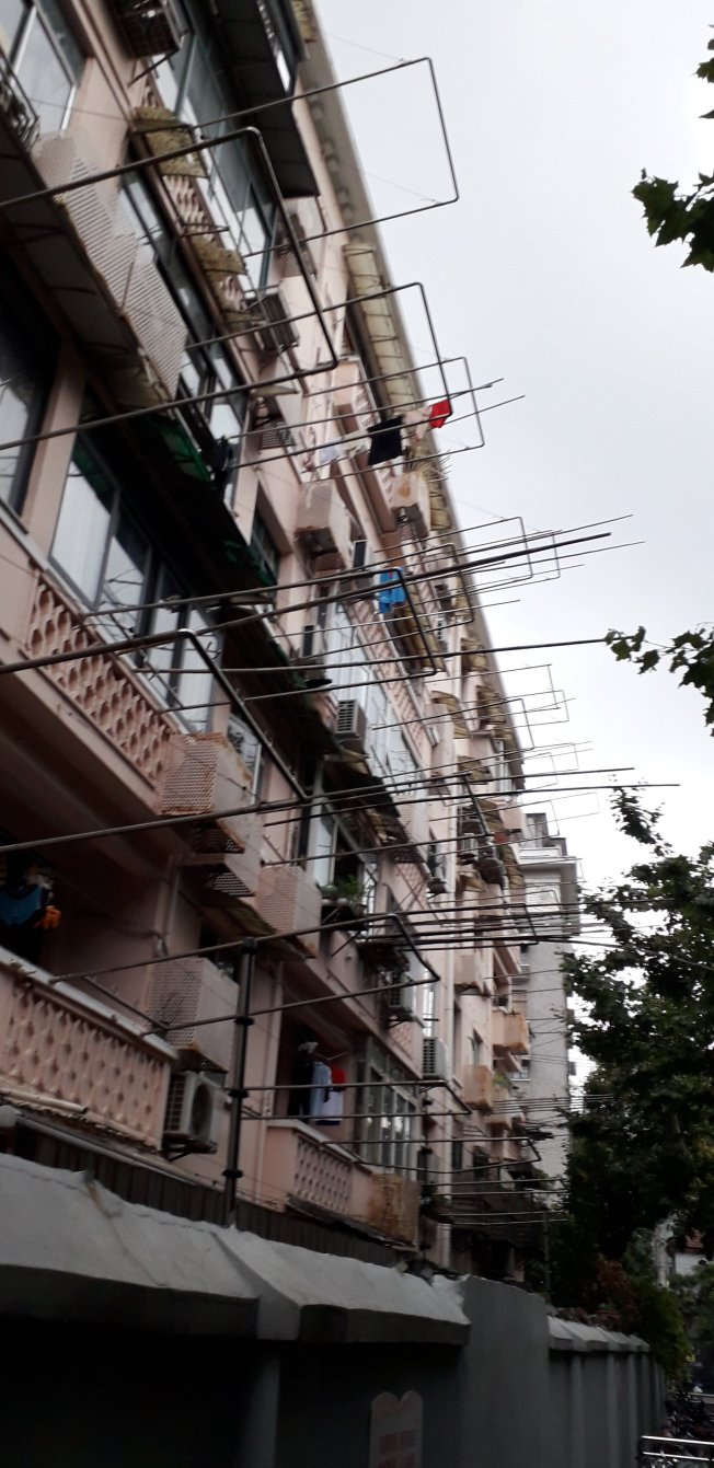 Le petit clin d’oeil du jour c’est pas vraiment des nouvelles technologies : un gros camion qui arrose les routes en ville pour éviter la poussière (on a en vu dans toutes les villes lors de notre voyage) et un système étrange pour étendre le linge dans les immeubles. Il y a des idées en Chine c’est sûr !