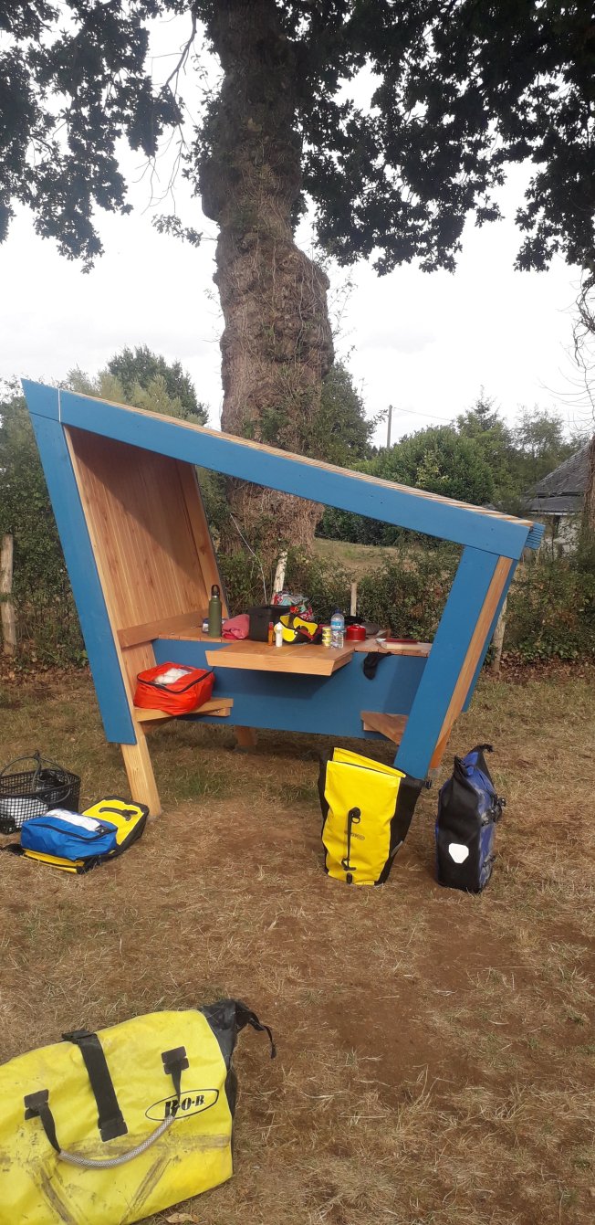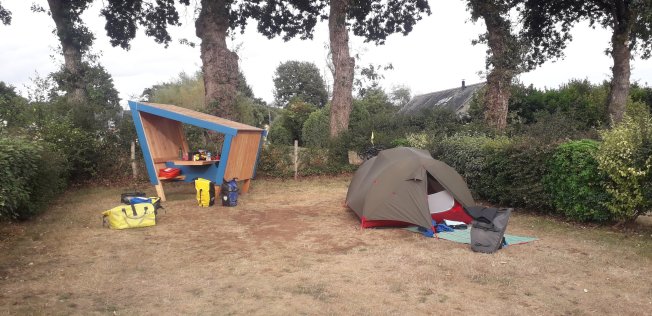Il y a de nouveau de jolie petites cabanes sur ce camping et on en a même une petite pour manger sur notre emplacement.
