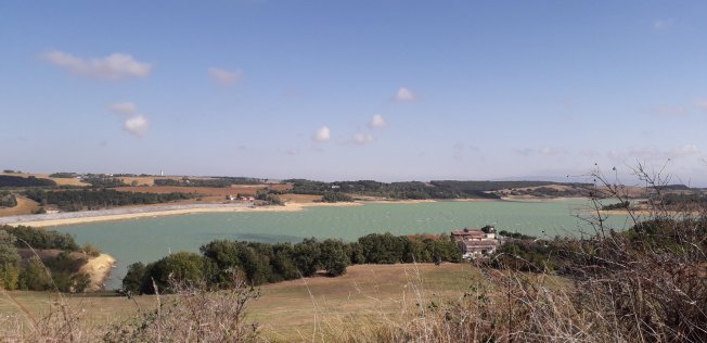 Cette fois on décide de s’arrêter et d’y monter : un joli chemin et une belle vue ! On croise des chasseurs qui nous recommandent de modifier notre chemin qui passe en plein milieu de leur battue au sanglier : on obtempère…courageux mais pas téméraires 🙂