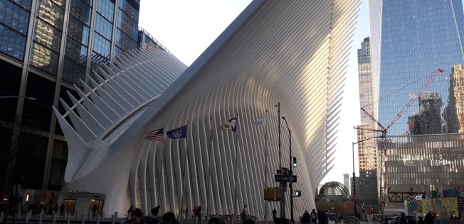 La zone autour de ground zéro est maintenant complètement refaite avec deux bassins à la place des tours jumelles comme mémorial. Aussi une zone de transit avec gare, métro etc…en forme de squelette style Calatrava à Valence.