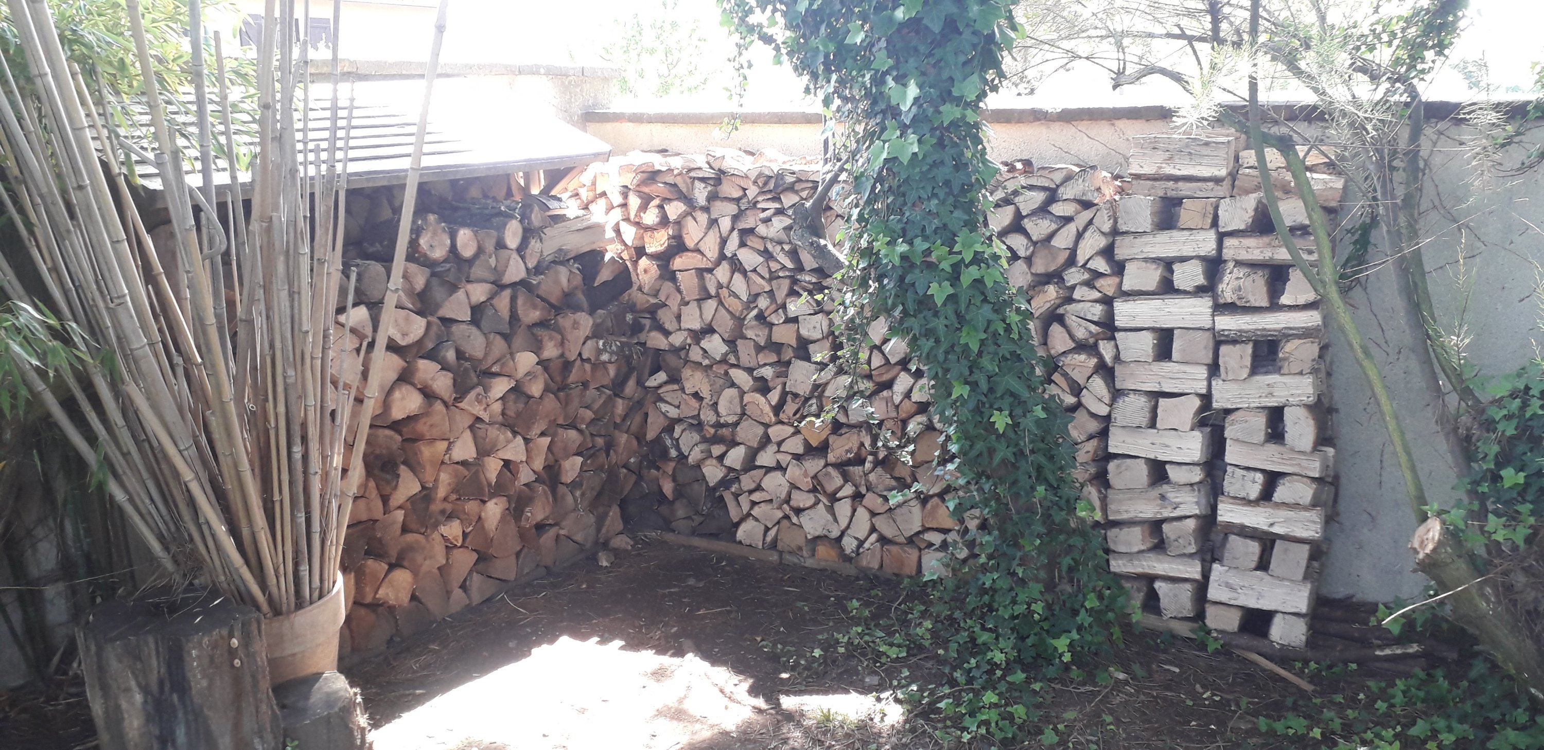 Il y a aussi eu la livraison du bois cette semaine : tout est maintenant rangé à l’autrichienne 🙂