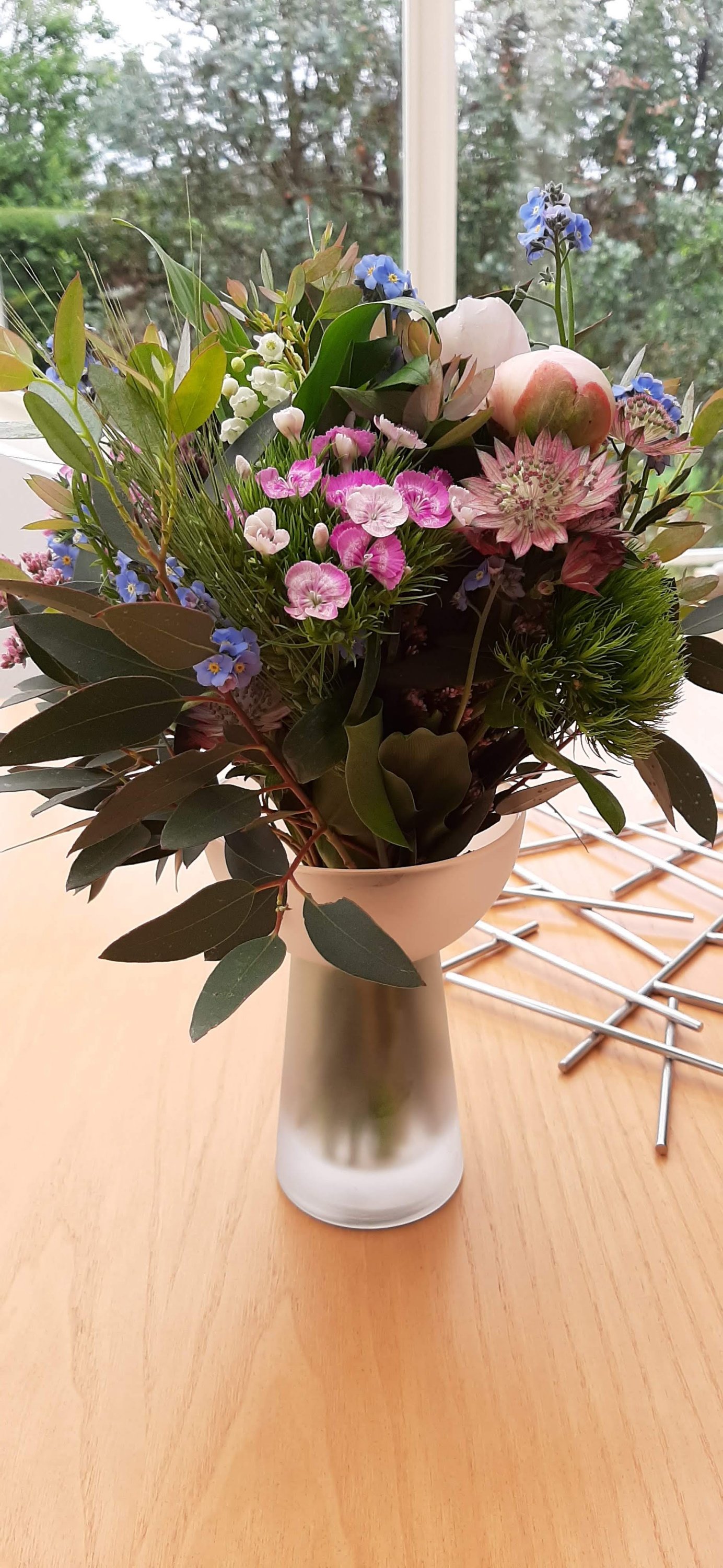 Pour les photos vous trouverez pêle-mêle le joli bouquet du 1er mai, un effet étonnant de halo autour du soleil (dû à la présence de cristaux de glace), des petits objets retrouvés en rangeant et quelques exemples des réalisations de Dominique.