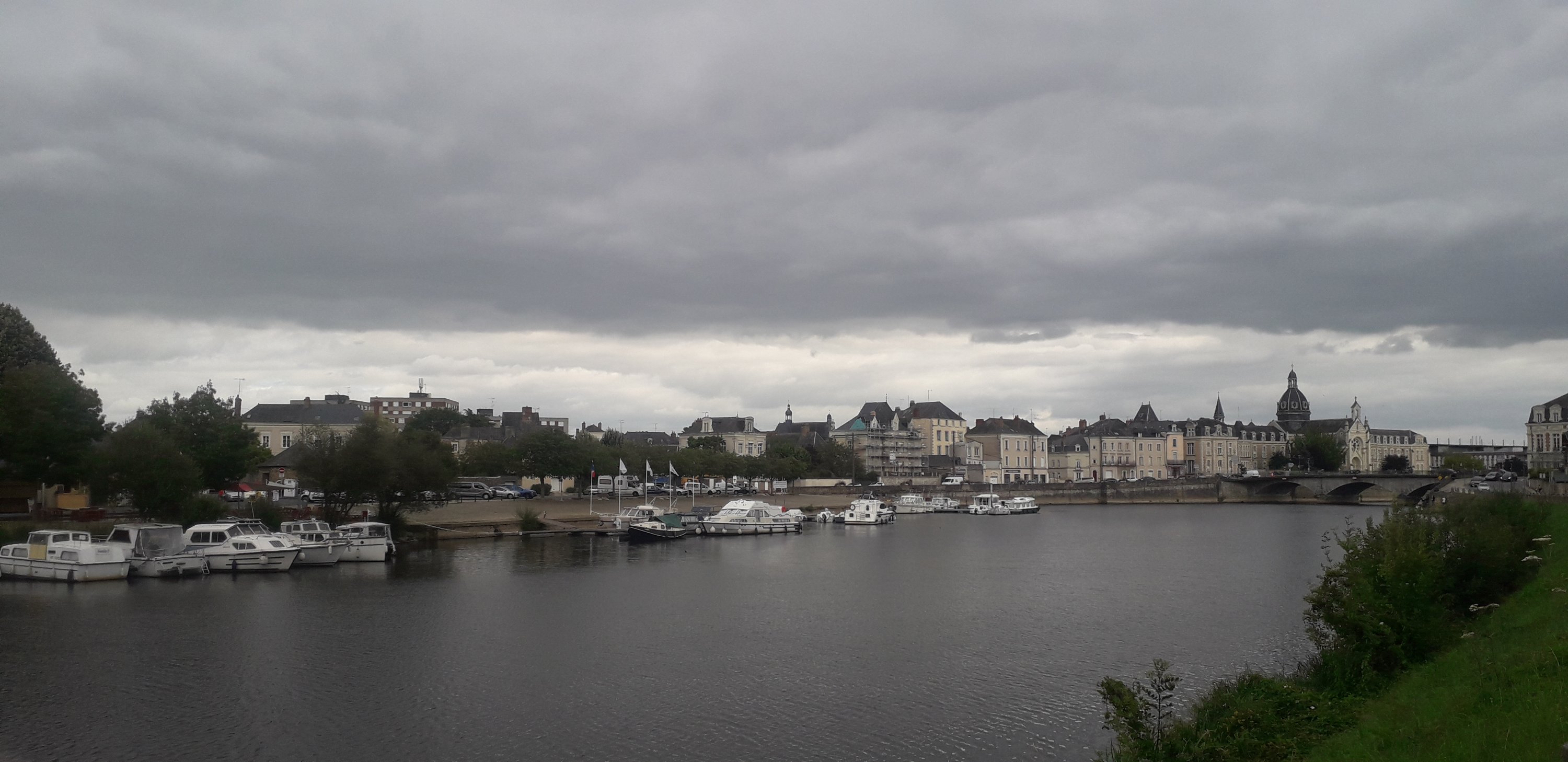 Un petit détour par Laval centre ville mais le temps est à la pluie à ce moment là donc on ne s’éternise pas. On traverse aussi Chateau Gonthier mais clairement le mieux c’est bien le bord de la Mayenne et son paysage bucolique.