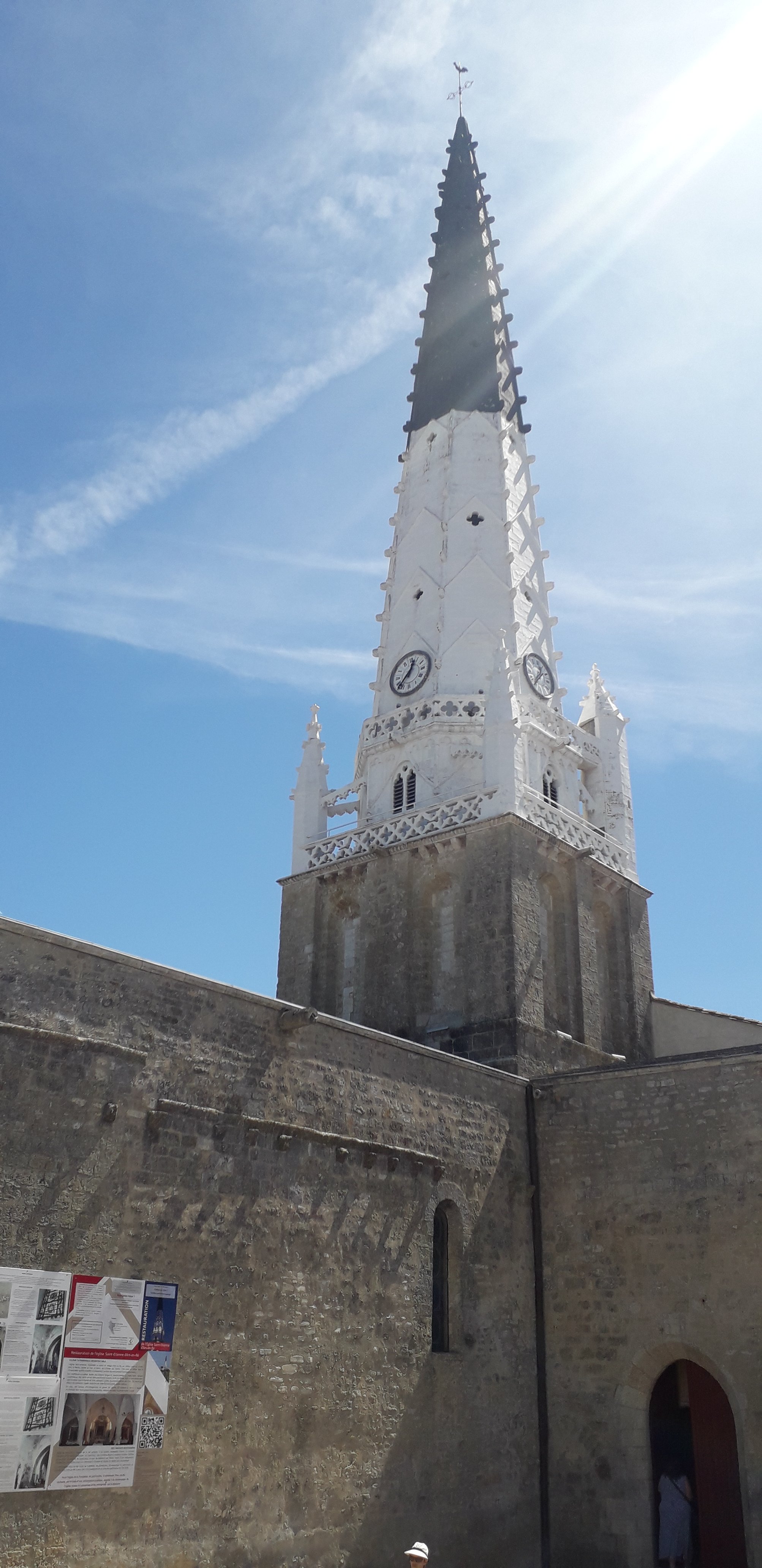 On avait dit pas de vélo les jours de repos mais ici c’est impossible car tout le monde se déplace comme cela : on fait donc 46 km en deux jours…Visite de Saint Martin en Re le premier soir et Loix et Ars le deuxième jour. On traverse les marais salants, les villages sont comme un décor de cinéma (petites maisons blanches avec des volets verts ou gris et bien sûr des roses trémières (on prélève des graines pour une introduction de l’espèce à Pibrac…)