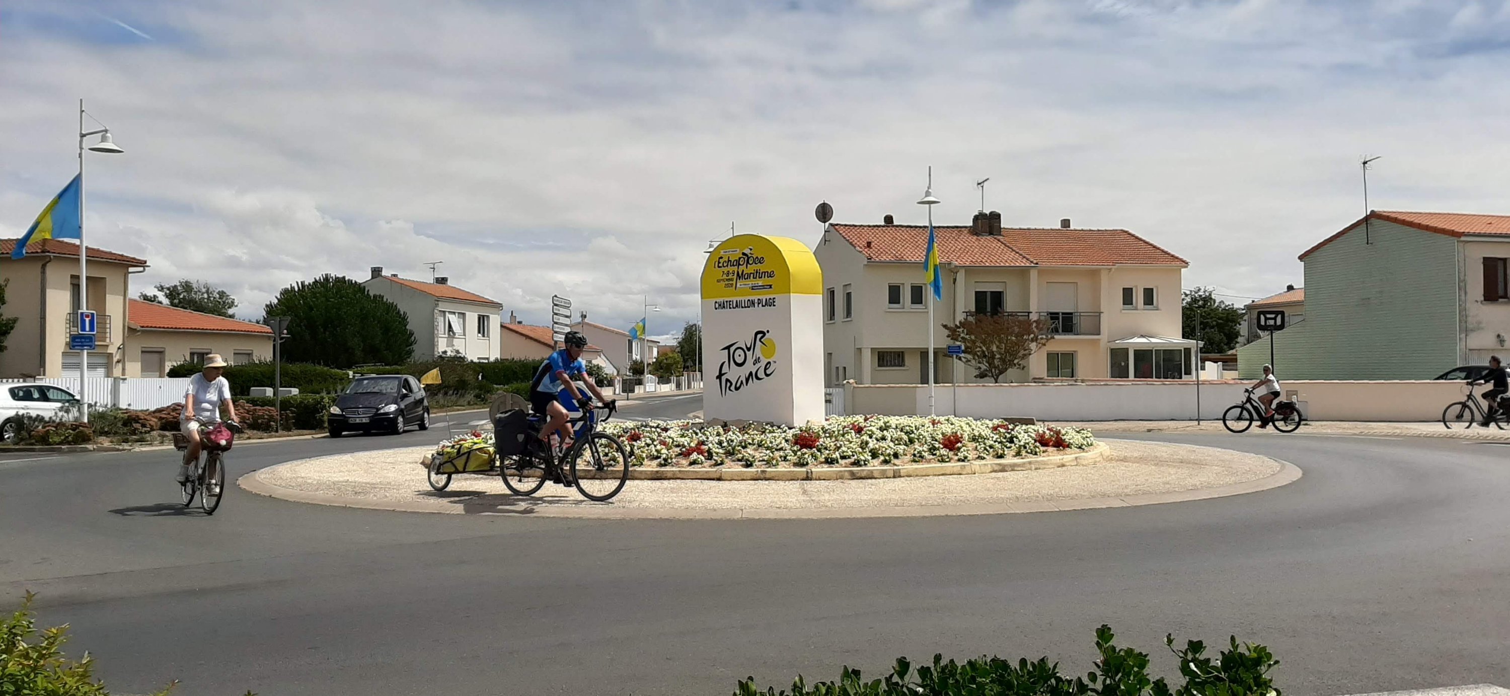 La traversée de La Rochelle se fait en partie avec le masque : eh oui il y a tellement de monde que la mairie a décidé le port du masque pour tous même en extérieur. En plus du casque et des lunettes cela nous fait une drôle de tête.