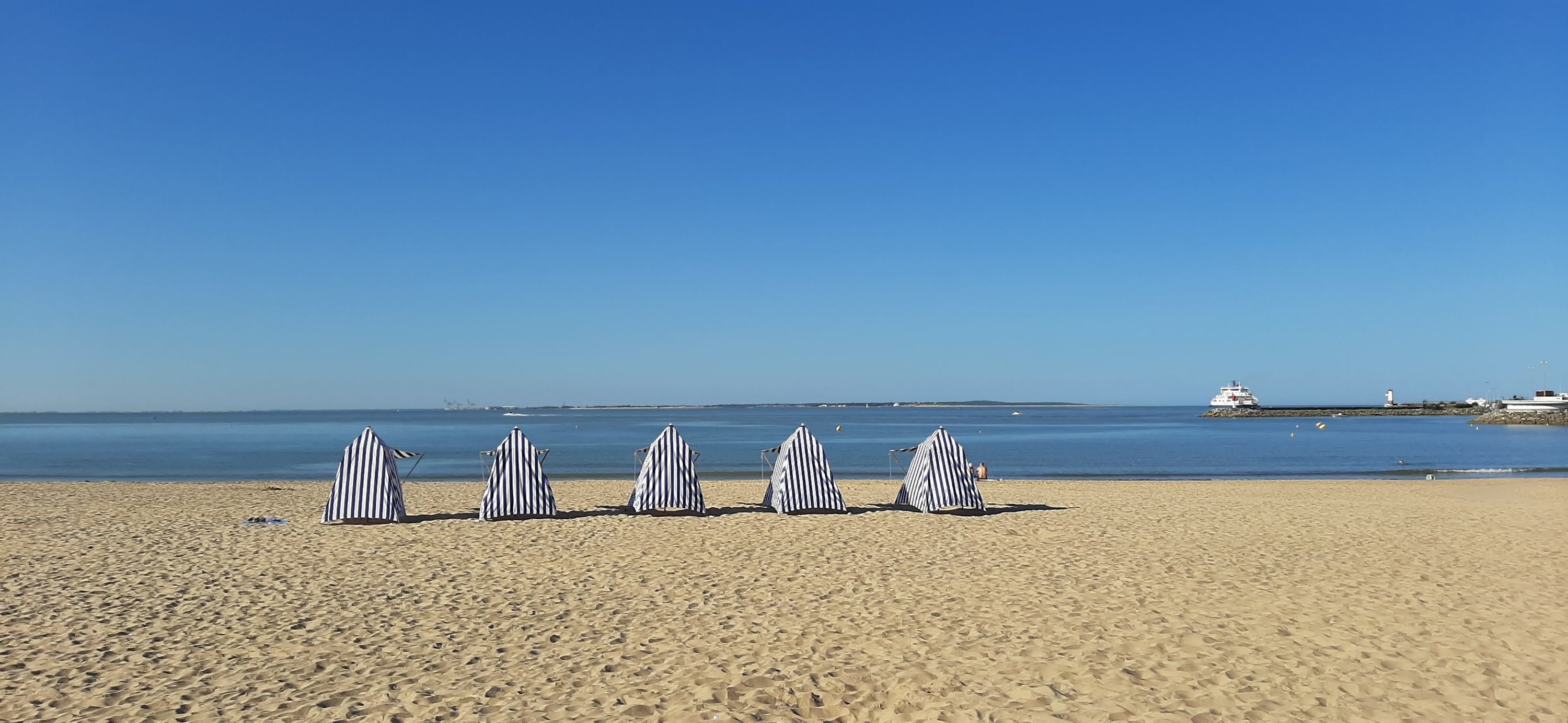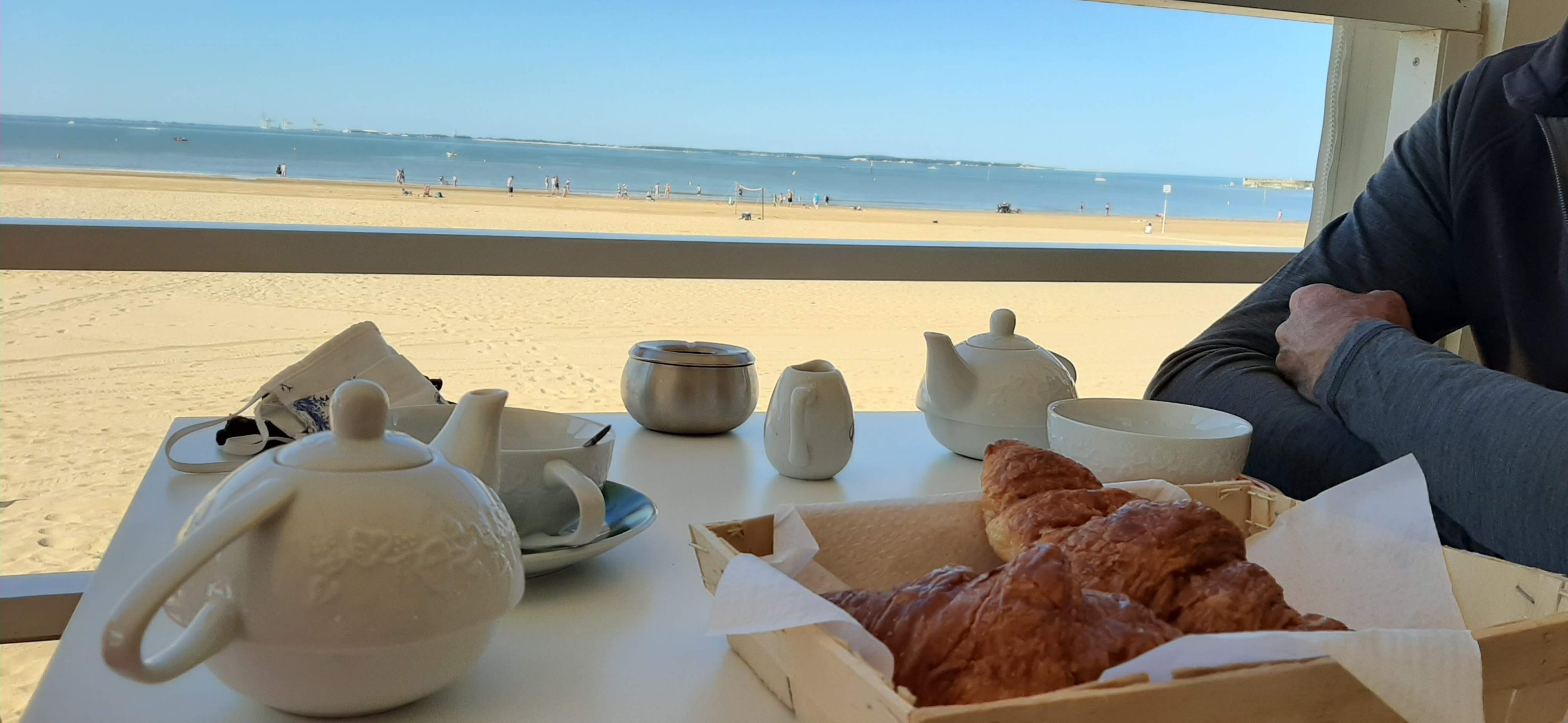 Aujourd’hui on prend le petit petit-déjeuner sur la plage au soleil car il faisait trop froid au camping…incroyable alors que les prévisions donnent des chaleurs importantes pour la fin de semaine. On va d’ailleurs modifier notre programme pour la suite : plus de stop à Bordeaux mais des étapes plus courtes afin de ne rouler que le matin les jours de grosse chaleur.