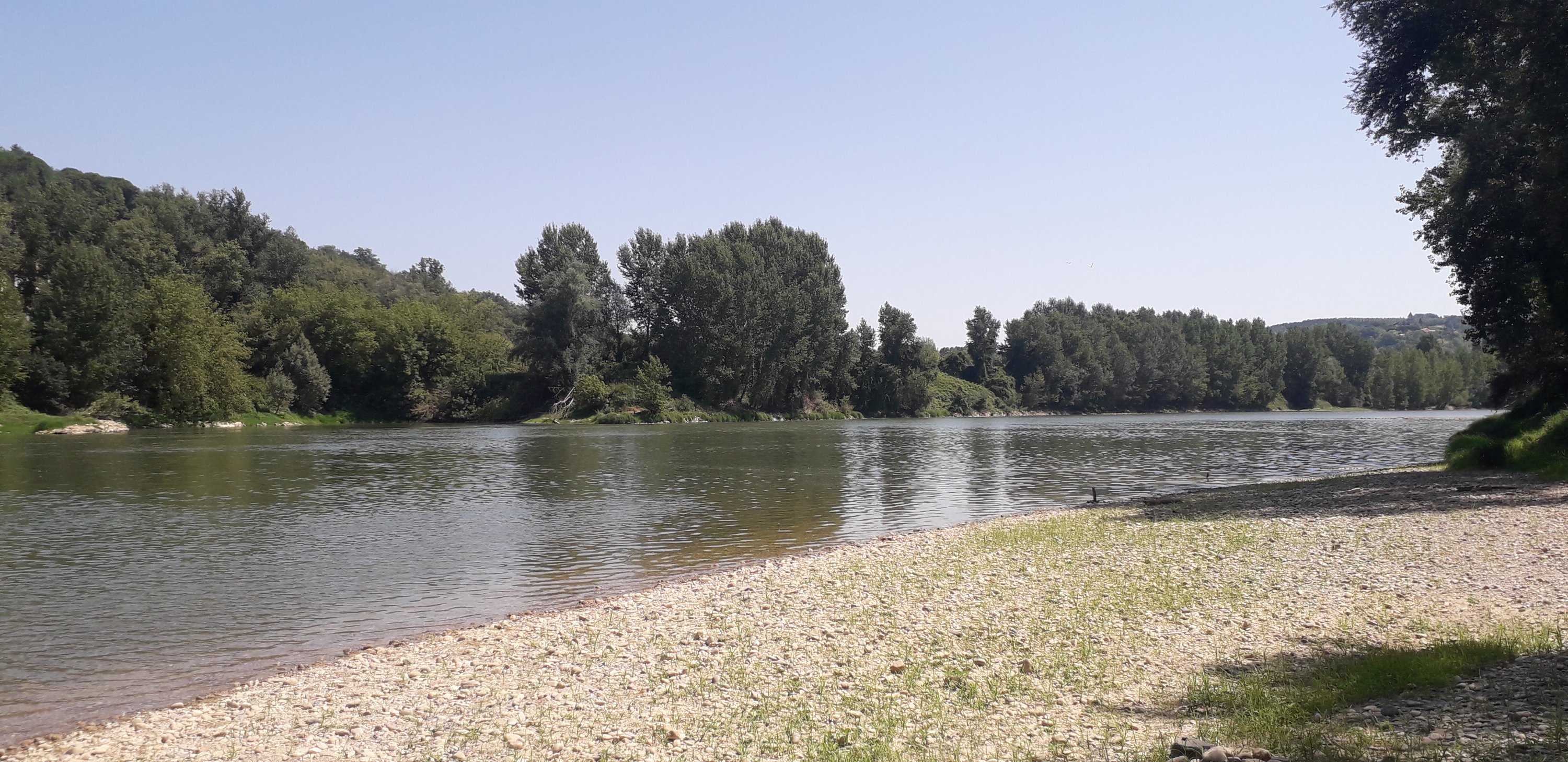Pas de bol pour la fin de l’étape, je pensais avoir sélectionné une chambre d’hôtes en bord de Garonne : en fait elle est sur les collines qui surplombent la vallée et on a donc terminé par une bonne côte de 2km avec 37 ou 38 degrés ambiants…sauna gratuit !