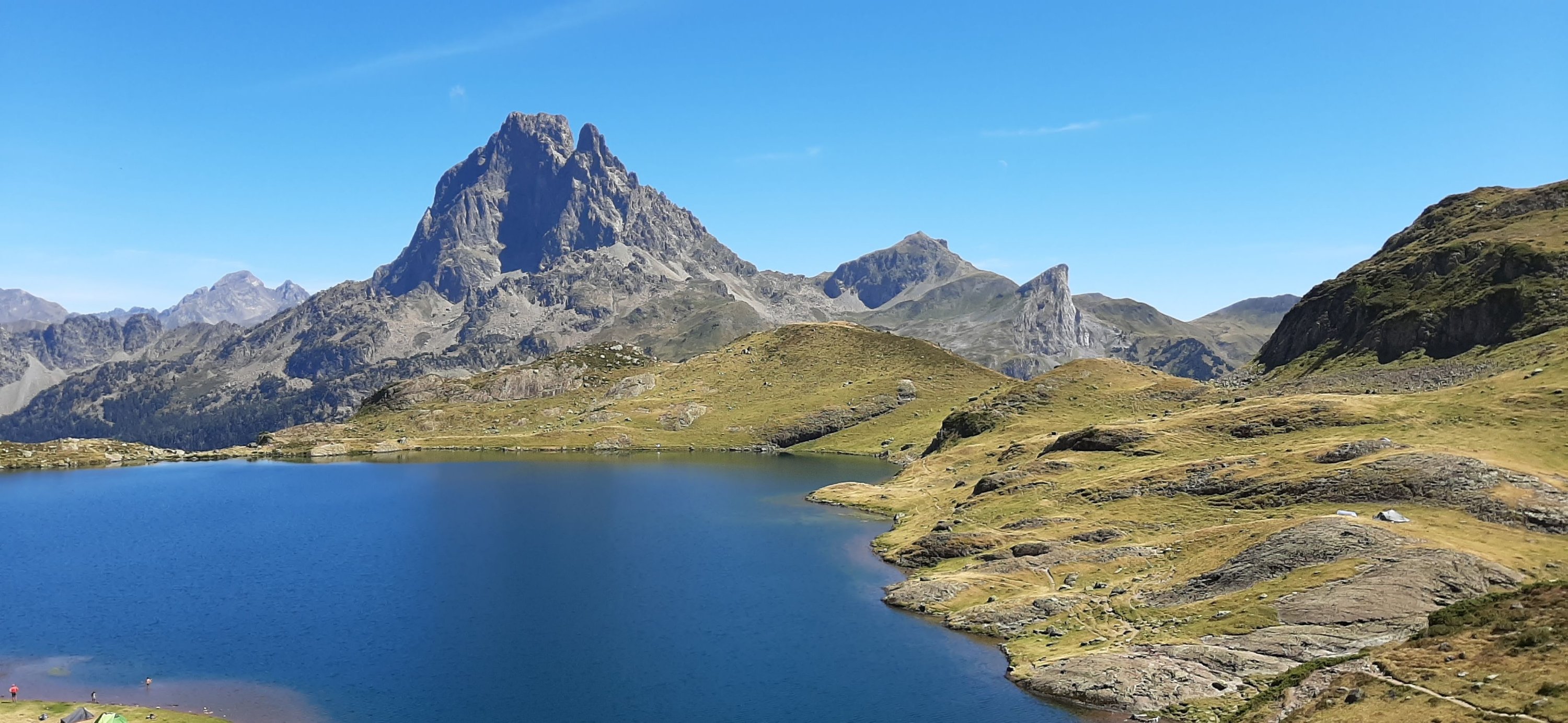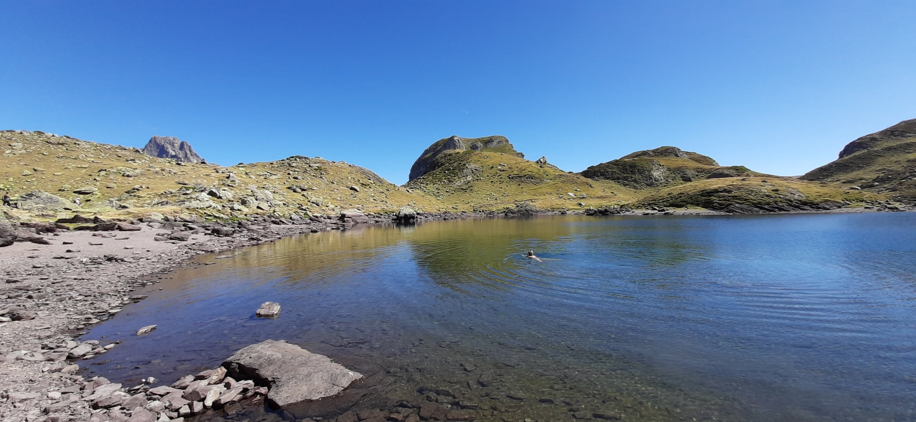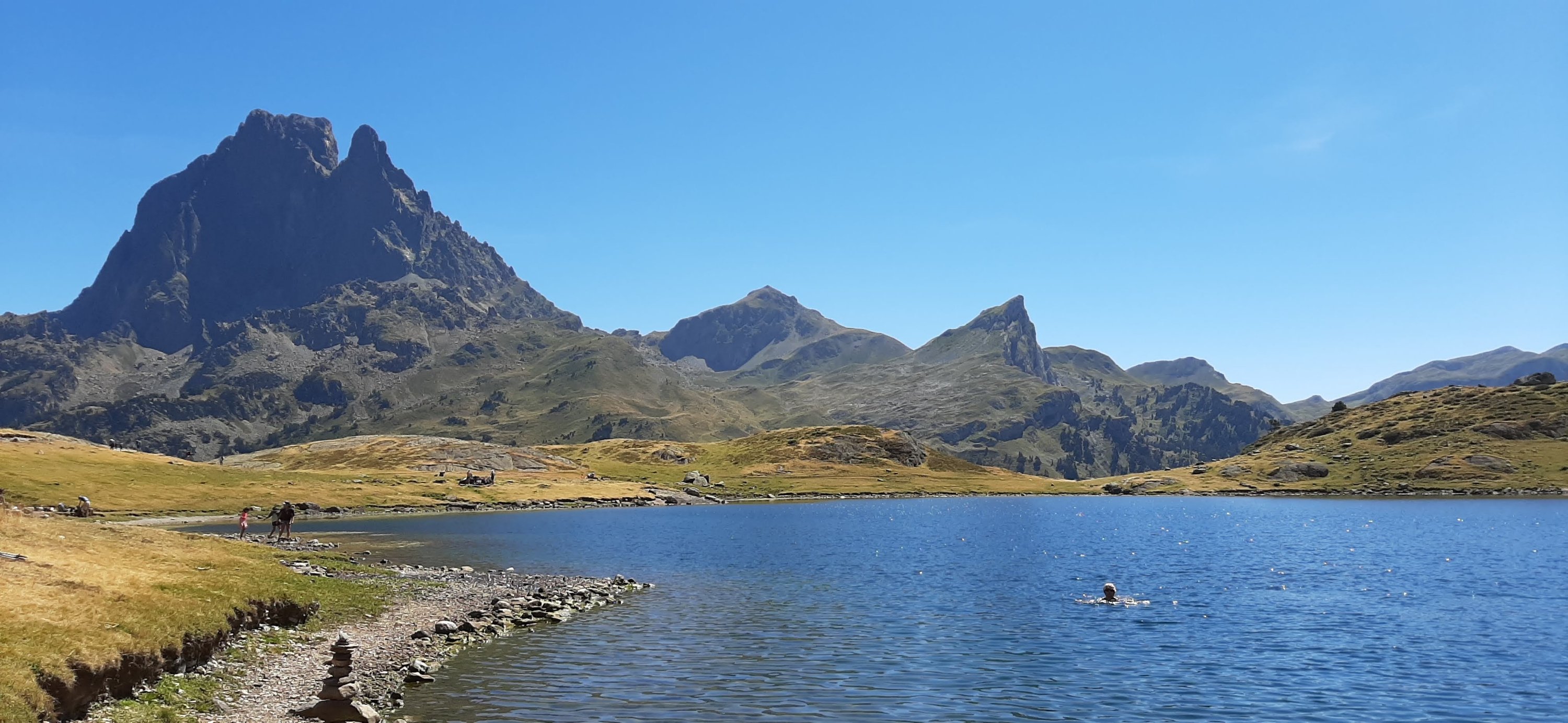 On va ensuite près du pic du midi d’Ossau pour camper au pied du col d’Aubisque et faire une jolie randonnée le lendemain avec vue sur ce pic si particulier. Cerise sur le gâteau, on se baigne dans deux lacs dont un à 2000 mètres d’altitude : même pas froid grâce aux jours de canicule qui ont précédés.