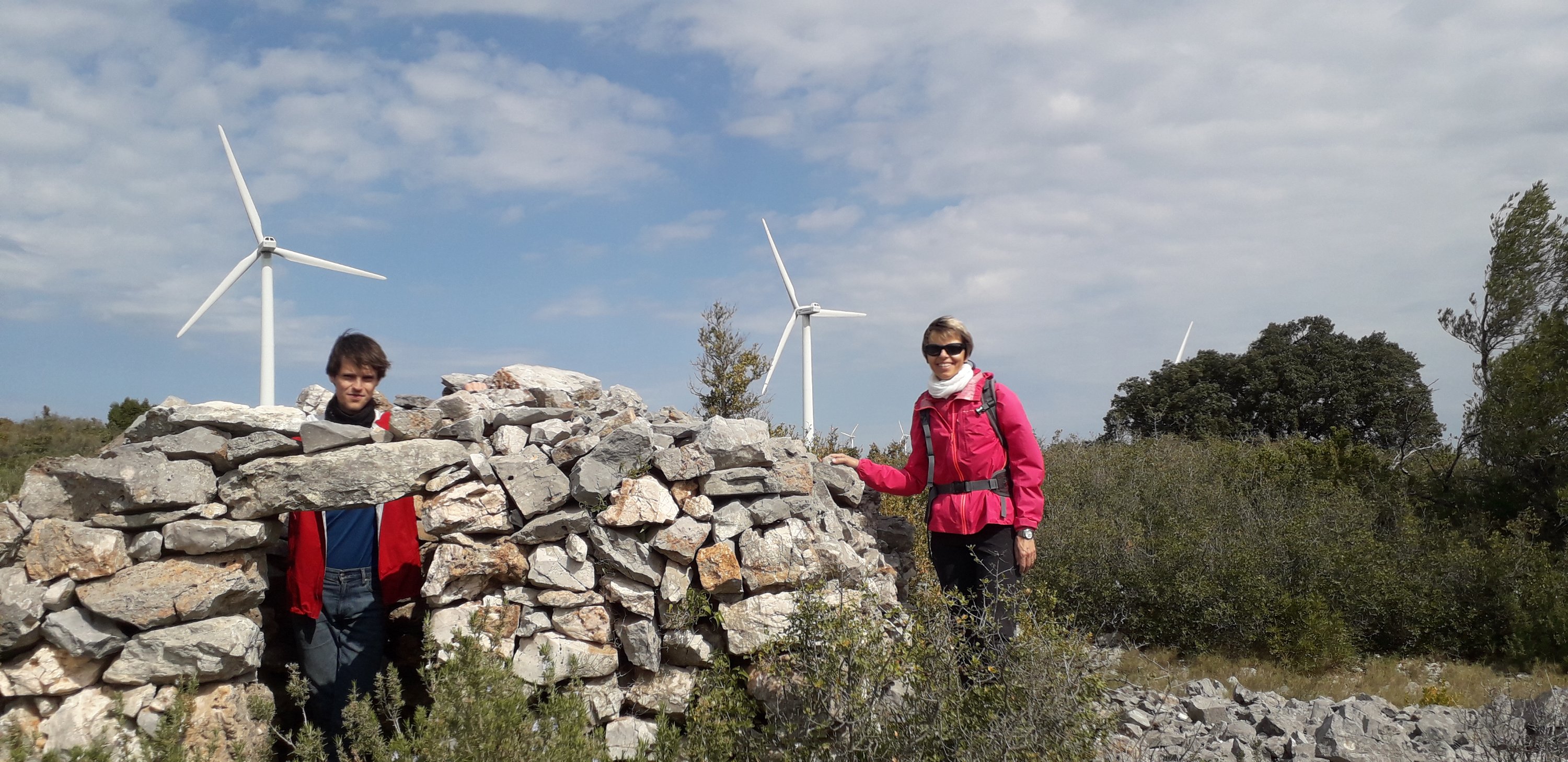 Il y a beaucoup de ‘capitelles’ sur les terrains autour de Fitou : ce sont de petites maisons de pierre qui ont été créées par les bergers. Aussi beaucoup d’éoliennes : la fréquence du vent le justifie bien ! Et bien sûr la végétation méditerranéenne est omniprésente lors des balades : thym, romarin, cistes, petites asperges sauvages etc…