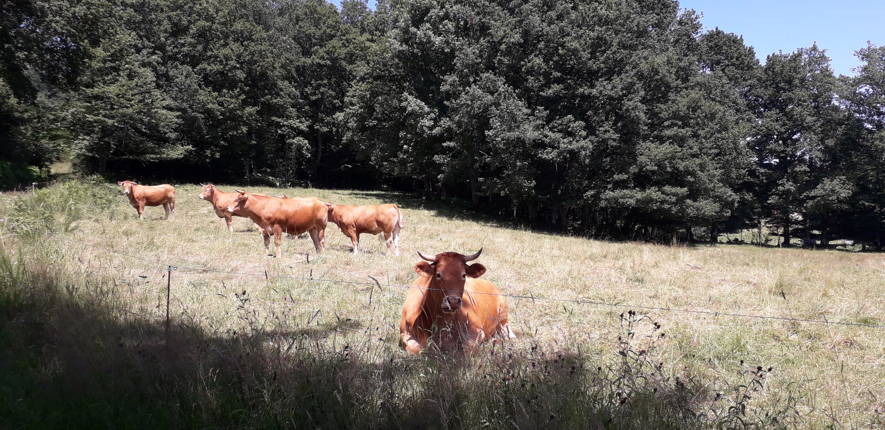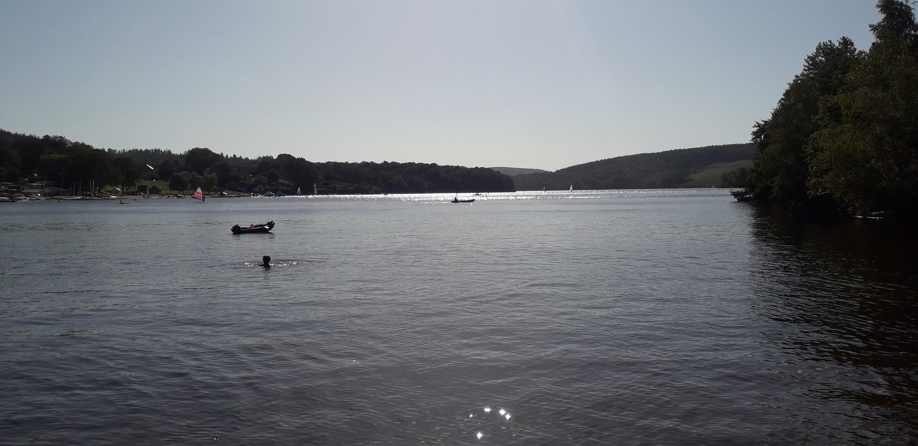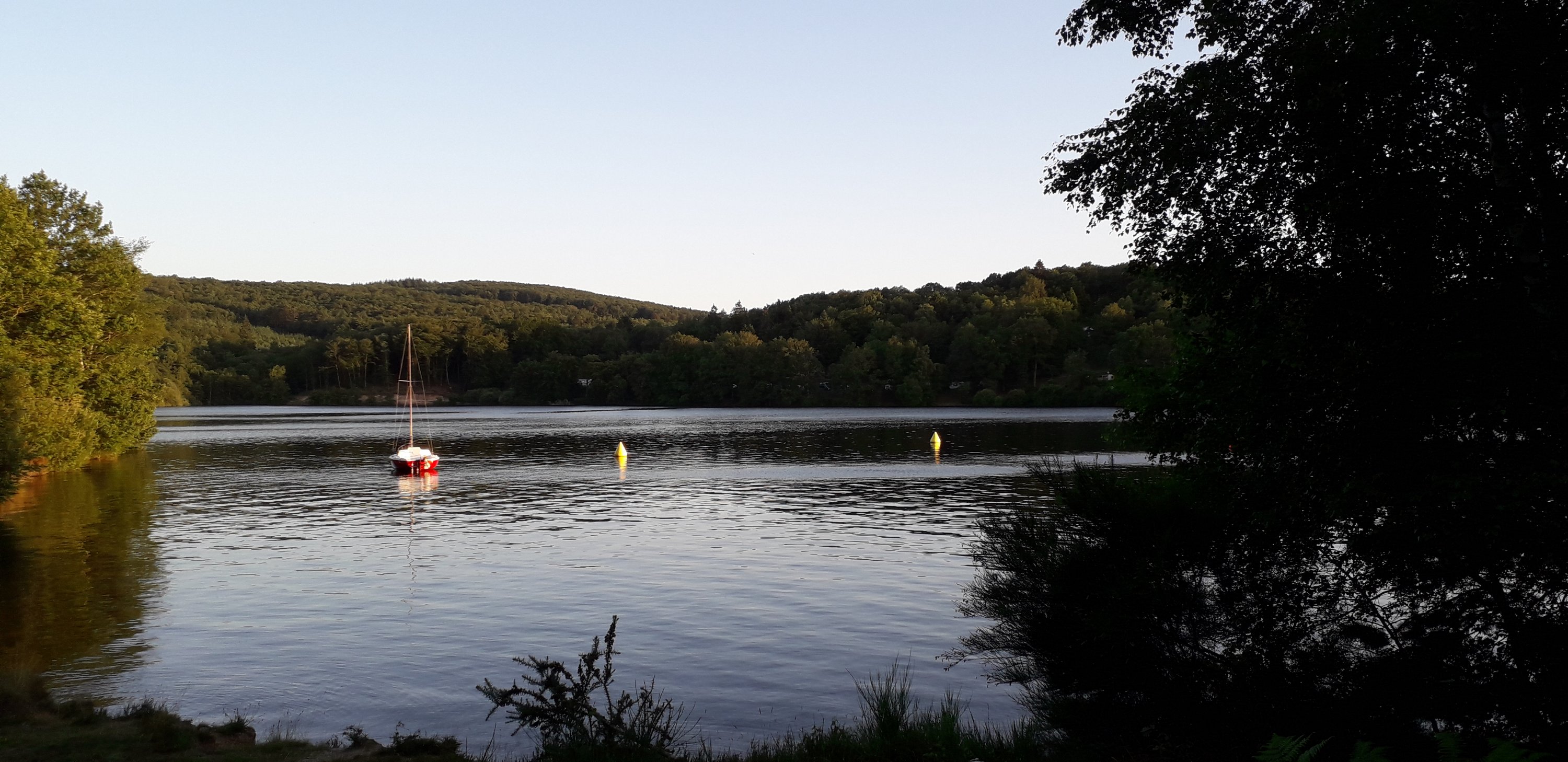 Nous entrons aujourd’hui dans le parc des Millevaches et c’est superbe ! De belles montées encore puisque le lac est à 650 mètres…Nous nous baignons juste après avoir planté la tente afin de nous rafraichir : quelle différence avec la semaine dernière !