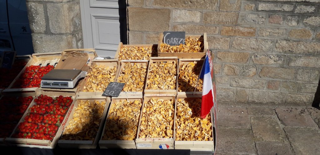 En partant ce matin il y avait plein de girolles aux marché et lors d’un arrêt nous trouvons des cêpes. On a tenté de les manger ce soir mais ils etaient amers…pas de chance.