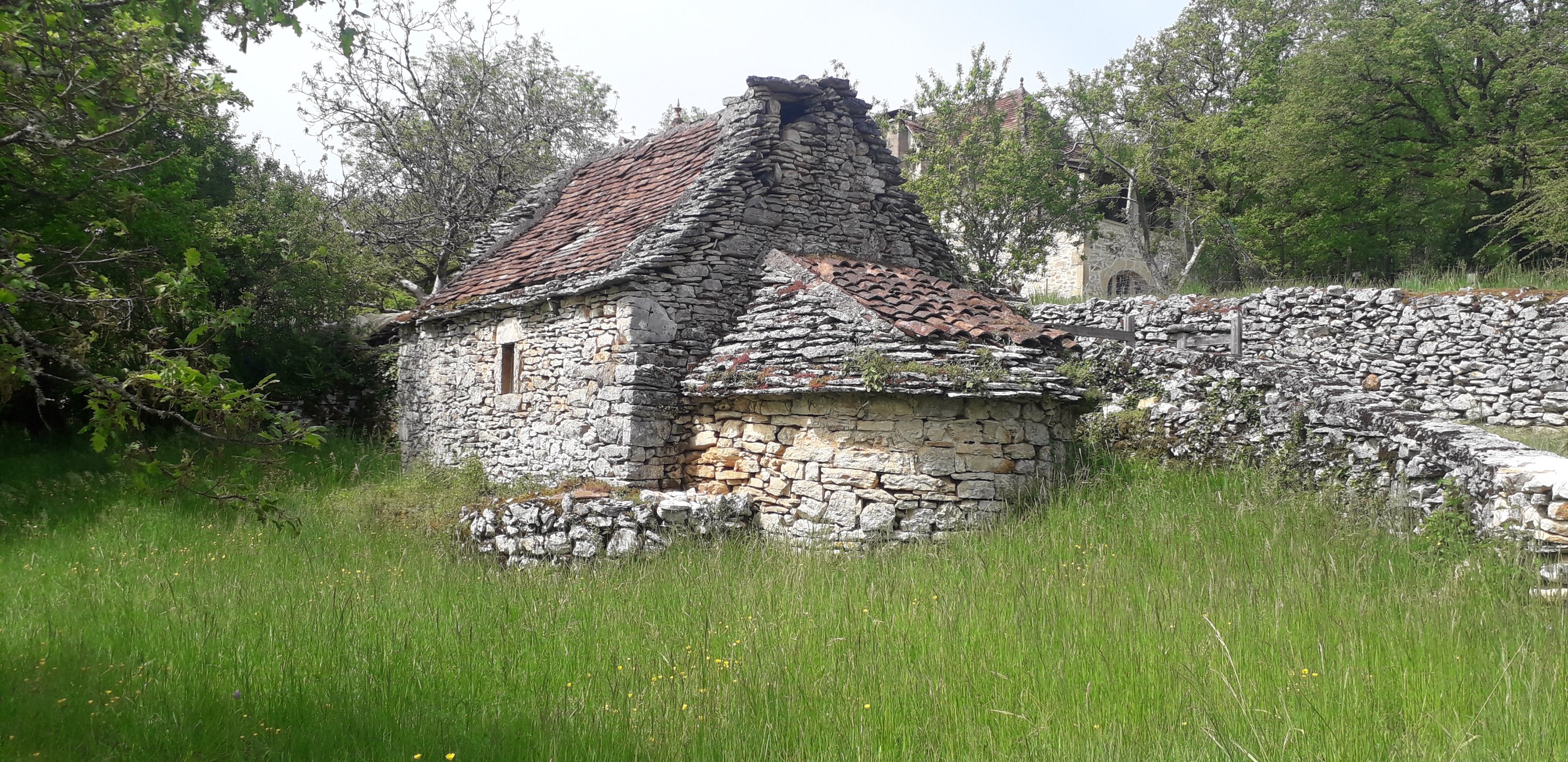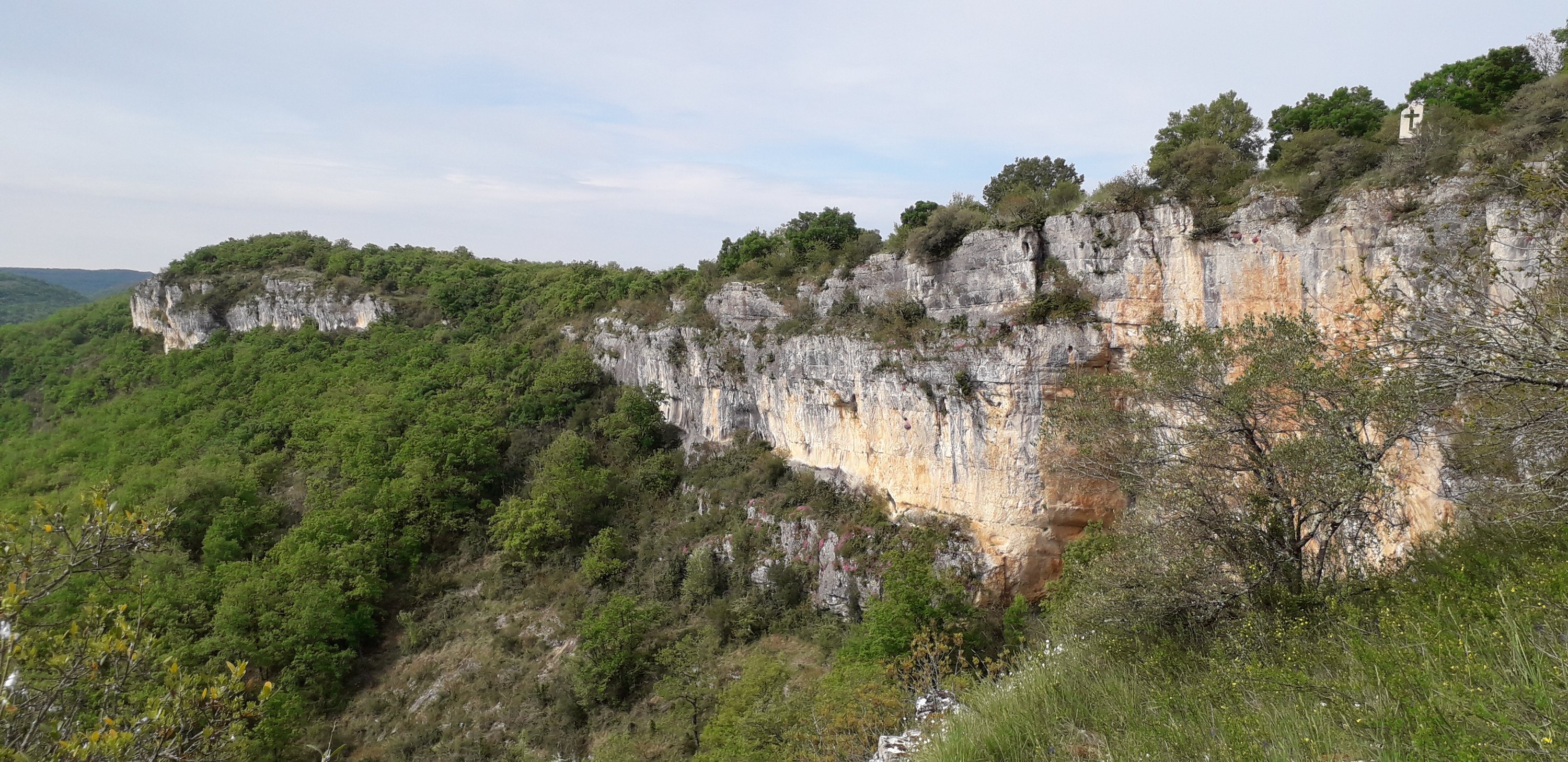Aujourd’hui nous continuons à suivre la vallée du Célé. Nous restons globalement sur le haut de falaise et le plateau mais le chemin nous fait quand même faire pas mal de montées et descentes…