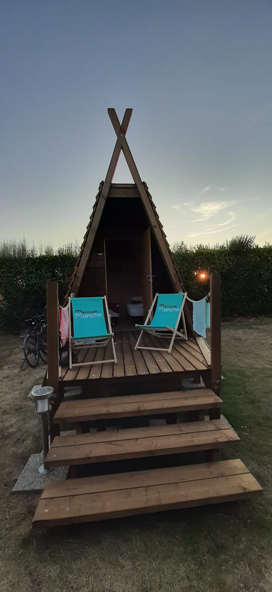 Heureusement un client de ce camping nous conseille un camping municipal à 6 kms de là où bonne surprise il leur reste une cabane en bois : ouf !! Il nous restera à trouver une solution pour samedi soir. A partir de dimanche soir il y aura moins de monde.