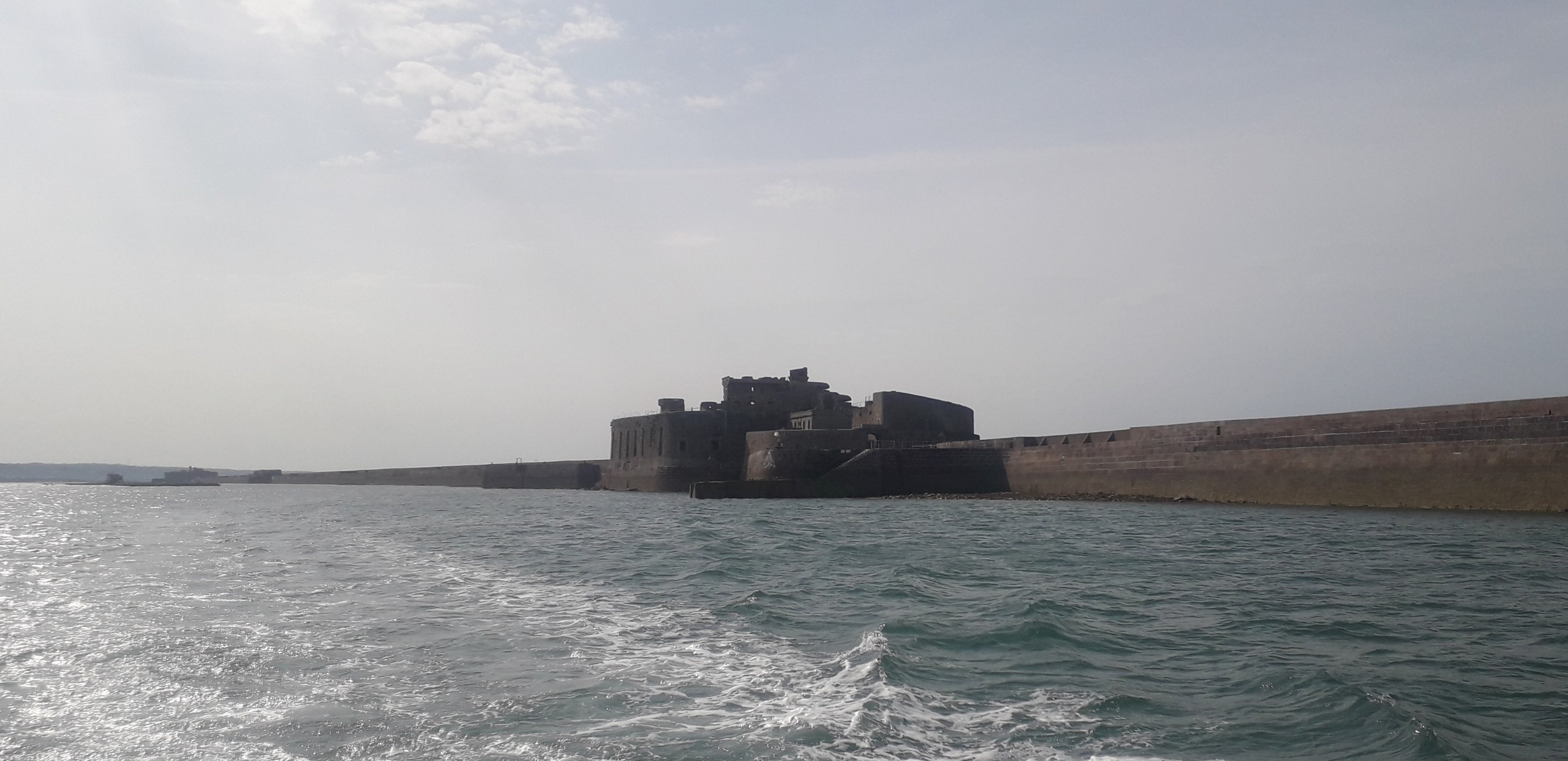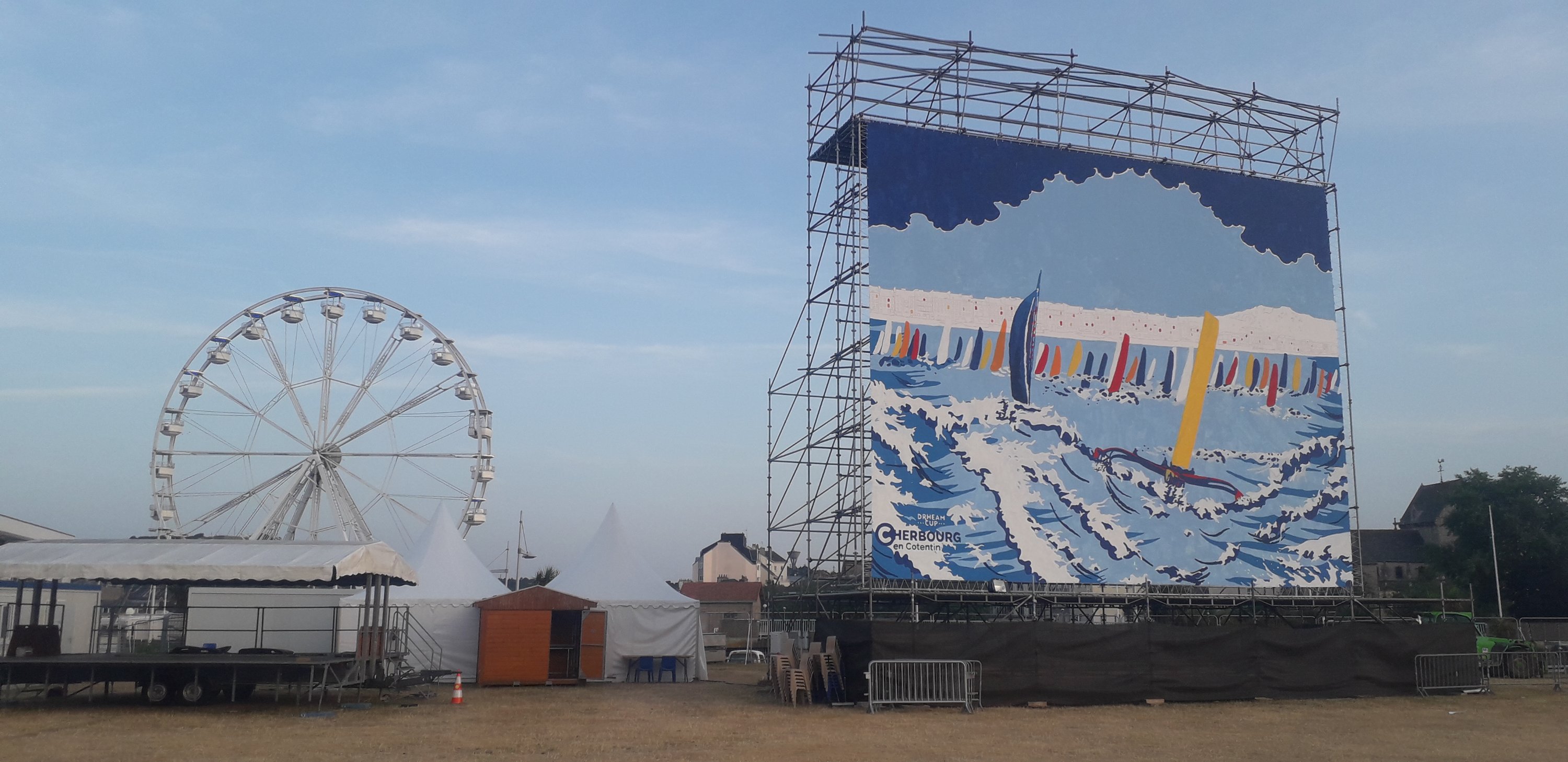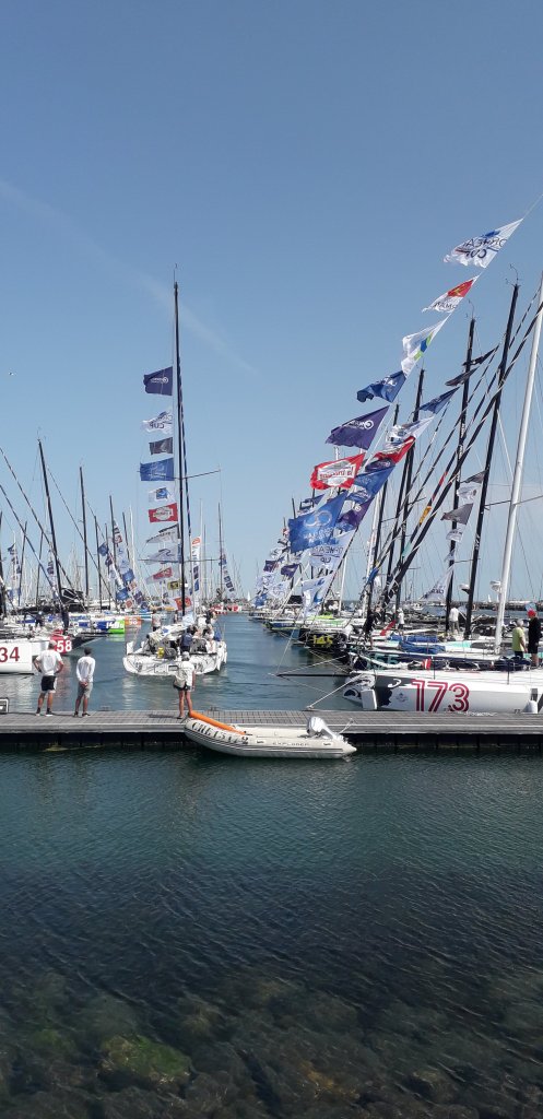 Nous sommes arrivés juste au moment du départ d’une course au large (la Drheam cup) qualificative pour la fameuse Route du Rhum. Tous les bateaux ont des pavillons du pont jusqu’au haut du mat : c’est visuellement assez impressionnant. Nous les avons vus sortir du port : pas mal…