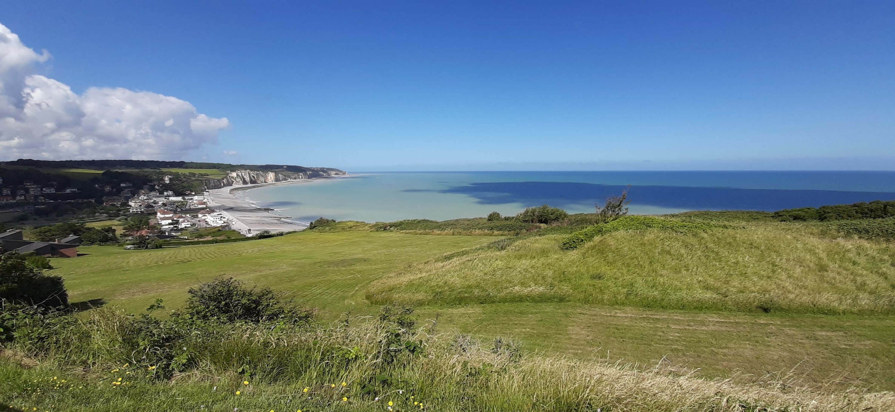 Le petit village fortifié de Domfront est vraiment joli et la balade du soir bien agréable : coucher de soleil et vue magnifique sur la campagne de Normandie.
