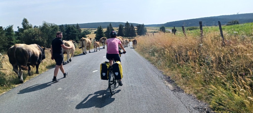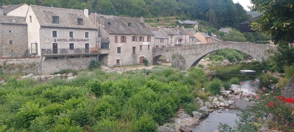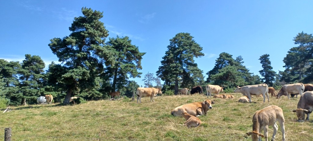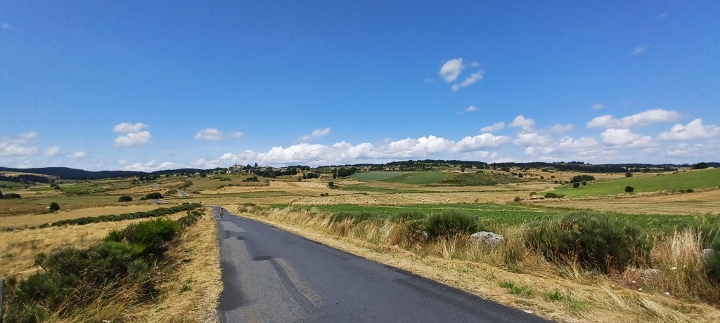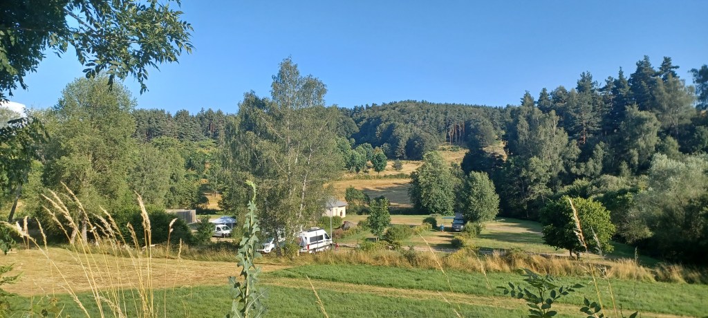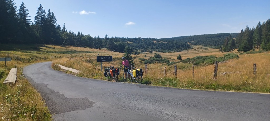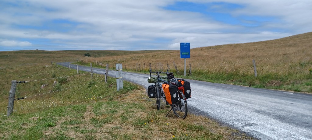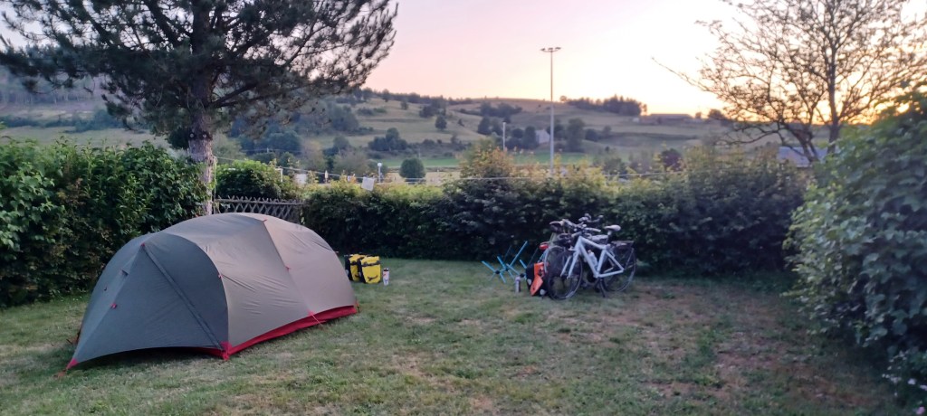 La nuit à été mouvementée dans le petit camping du Bleymard : fort orage avec même un peu de grêle et surtout beaucoup d’éclairs !! On avait mis toutes nos affaires dans nos duvets prêts à nous réfugier dans les sanitaires juste à côté. Finalement plus de peur que de mal : pas de fuites dans la tente. Le calme revenu vers 2h30 du matin un 38 tonnes vient stationner juste à côté du camping : le conducteur doit y dormir quelques heures mais par contre son bloc de climatisation se met en marche tous les quarts d’heure…finalement il repart à 5h…j’étais bien allé faire un tour en pyjama autour mais rien ne bougeait. Et oui avec les camping c’est toujours un peu incertain 🙂