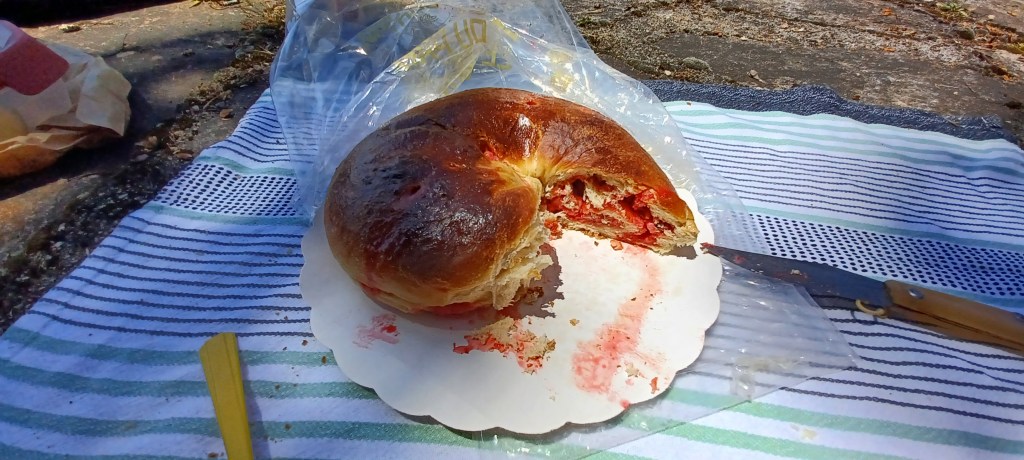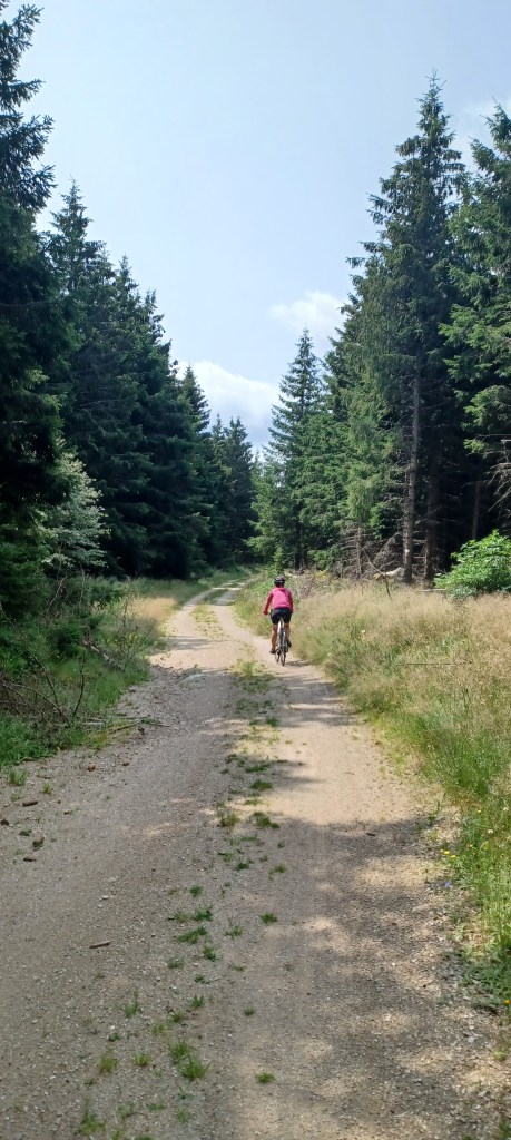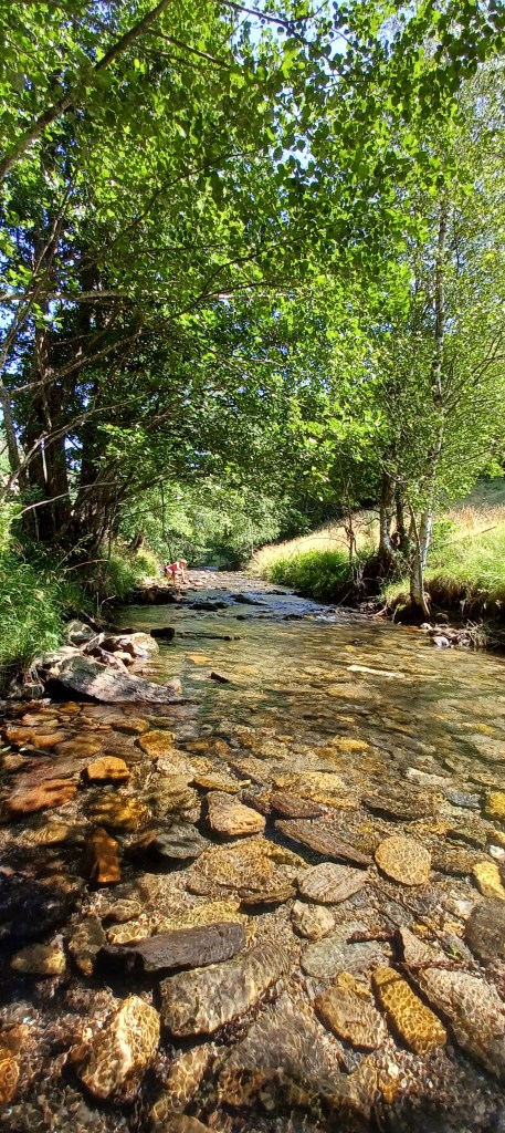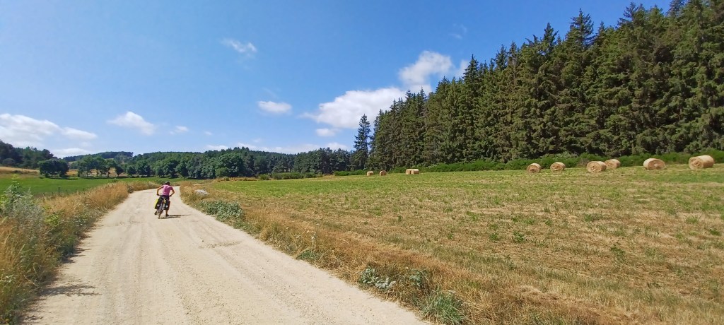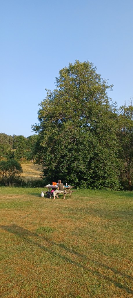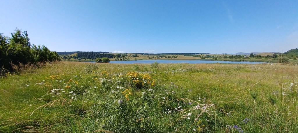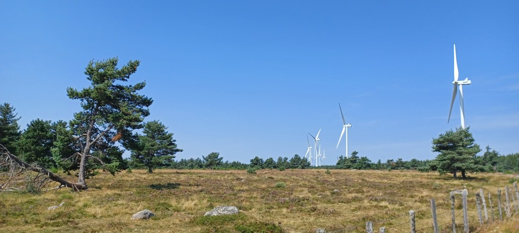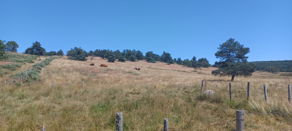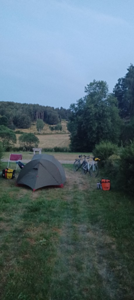 La nuit à été mouvementée dans le petit camping du Bleymard : fort orage avec même un peu de grêle et surtout beaucoup d’éclairs !! On avait mis toutes nos affaires dans nos duvets prêts à nous réfugier dans les sanitaires juste à côté. Finalement plus de peur que de mal : pas de fuites dans la tente. Le calme revenu vers 2h30 du matin un 38 tonnes vient stationner juste à côté du camping : le conducteur doit y dormir quelques heures mais par contre son bloc de climatisation se met en marche tous les quarts d’heure…finalement il repart à 5h…j’étais bien allé faire un tour en pyjama autour mais rien ne bougeait. Et oui avec les camping c’est toujours un peu incertain 🙂