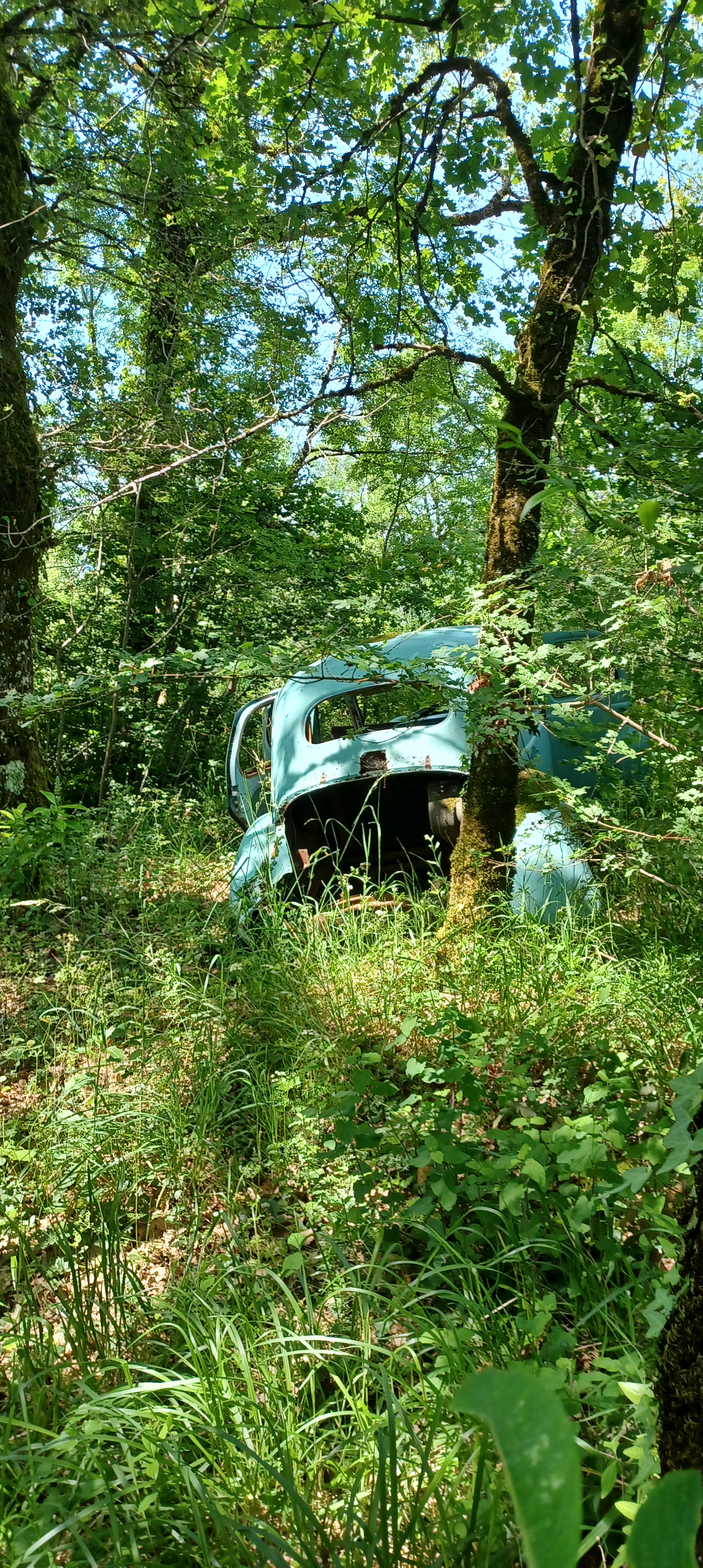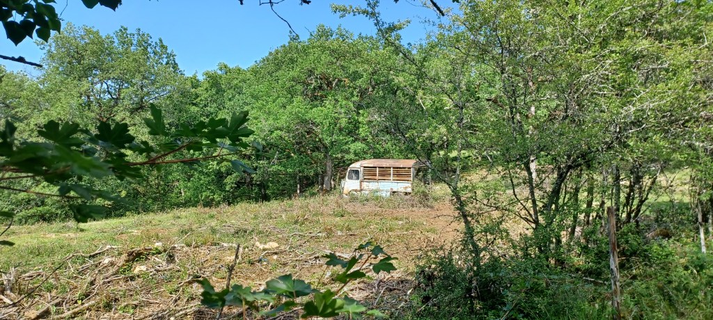 On longe de nombreuses noieraies : la noix c’est vraiment la spécialité de la Corrèze ! Des vieilles Citroën aussi…