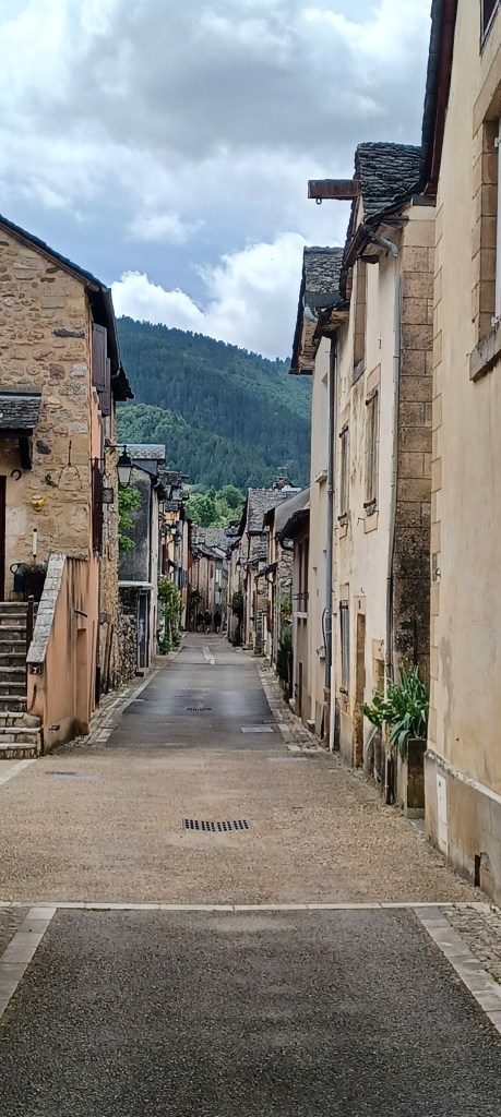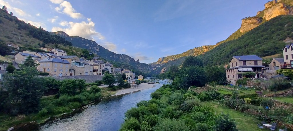 Aujourd’hui c’est la première journée sans réelle montée car on suit le Tarn dans sa partie la plus connue avec en particulier un passage à Sainte Enimie. Mais pas de chance pour nous, il y a un très fort vent de face qui nous oblige à mettre des braquets de montée sur le plat 😦