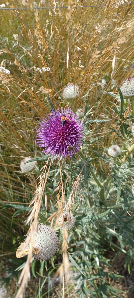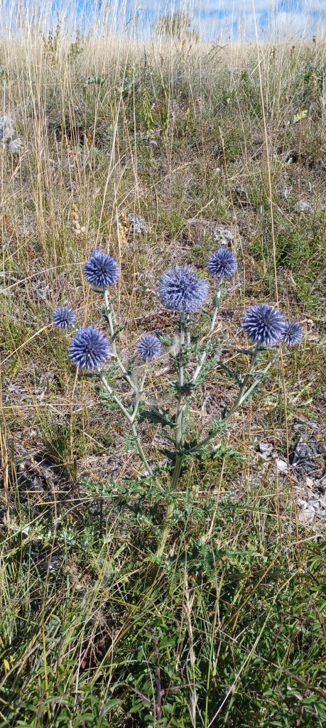 Il y a beaucoup de chardons bleus et aussi une variété qui se ferme très rapidement lorsqu’on les asperge d’eau (cardelles).