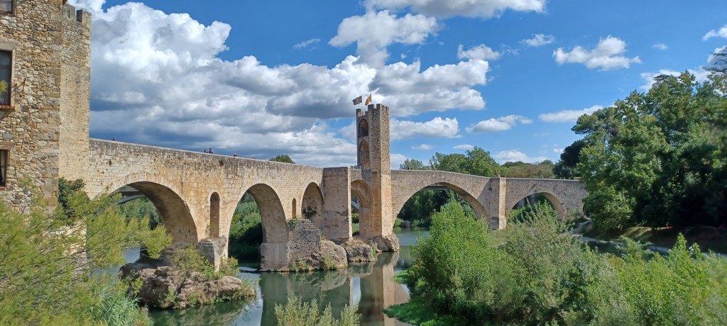 Avant d’arriver à Olot, on a visité Besalu : un chouette village…nous faisons une partie de la visite en même temps qu’un groupe d’une vingtaine de chinoises exubérantes c’est drôle ! Un deuxième village sur un éperon rocheux créé par un coulée de lave : Castellfollit de la Roca.