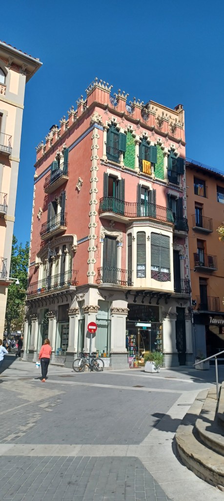 Olot c’est à l’intérieur des terres à peu près au niveau de Figueras en plein d’un parc naturel car il y a des volcans tout autour et même dans la ville : ce relief varié est assez sympa et donne un charme vraiment particulier à cette ville. Les constructions art nouveau ainsi que certaines très récentes et modernes nous ont bien plu (en particulier la stade d’athlétisme).